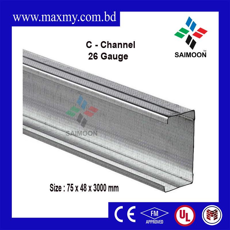 C – Channel is a metal Drywall stud wall component designed for vertical use when building a wall. This is an economical steel frame system for strong, compact, lightweight non load-bearing partition walls. Metal stud partitioning is ideal for use in domestic and commercial situations.  C stud is made from 26 gauge galvanised steel and is available in  75mm widths.