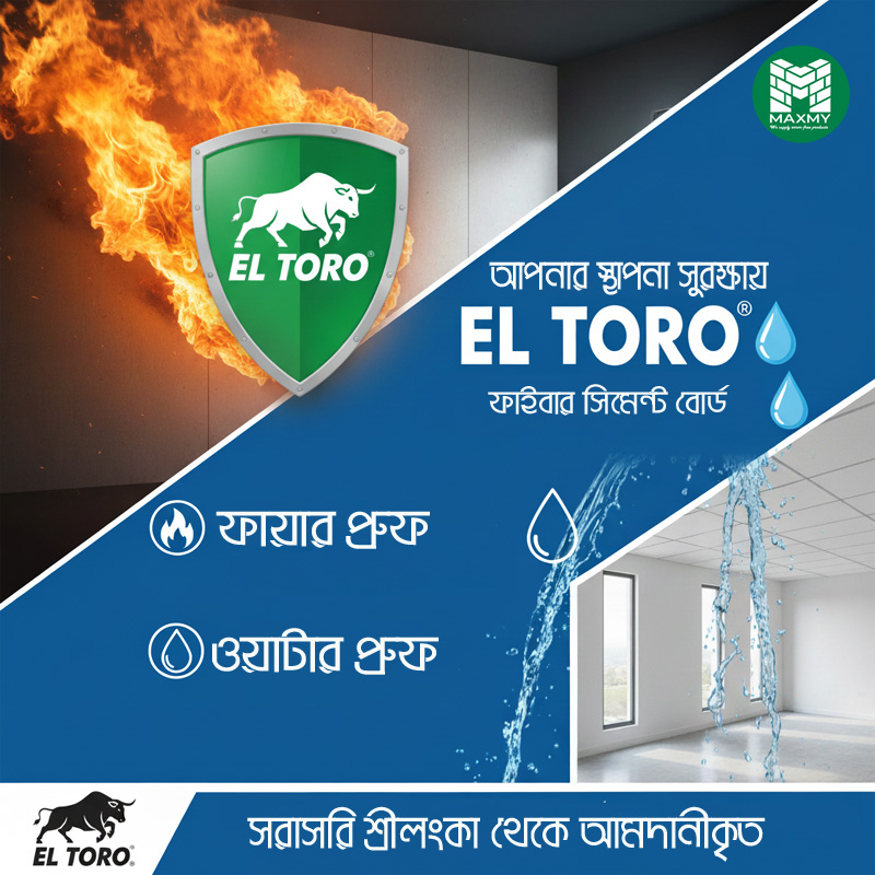 আপনার বাসা, অফিস, দোকান বা যেকোনো স্থাপনার জন্য, EL TORO ফাইবার সিমেন্ট বোর্ড হলো আধুনিক ও নিরাপদ নির্মাণ সামগ্রীর সেরা পছন্দ। আর কোনো চিন্তা নয়, আপনার স্থাপনার সুরক্ষা নিশ্চিত করুন আজই EL TORO ফাইবার সিমেন্ট বোর্ড দিয়ে!