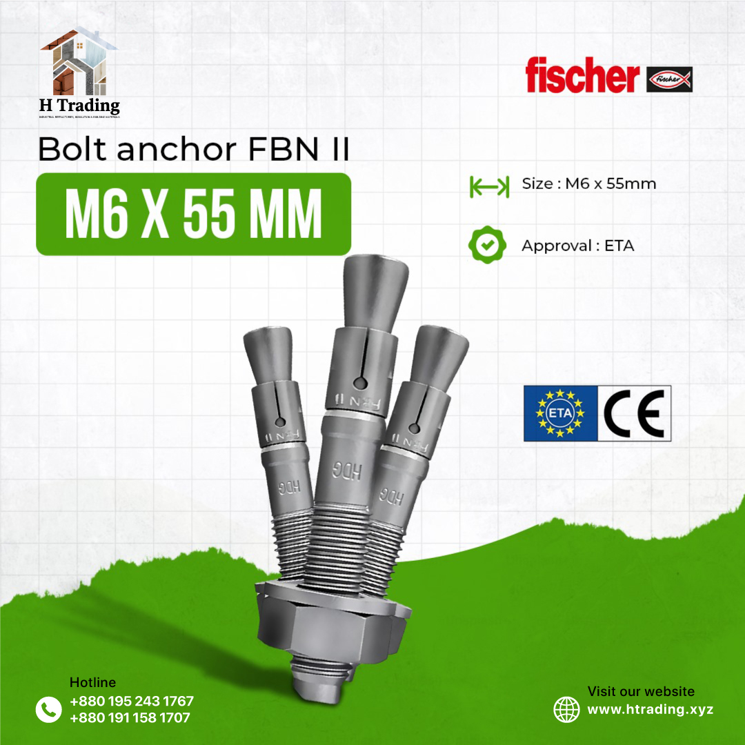 The fischer bolt anchor FBN II is a steel anchor for cost-effective fixations in non-cracked concrete. Thanks to its long thread and the two anchorage depths, the fischer bolt anchor FBN II is particularly flexible. In addition to pre-positioned and push-through installation, the bolt anchor is suitable for stand-off installation. In the stainless steel design, the bolt anchor is suitable for façade sub-structures, cantilevers and ladders outside.