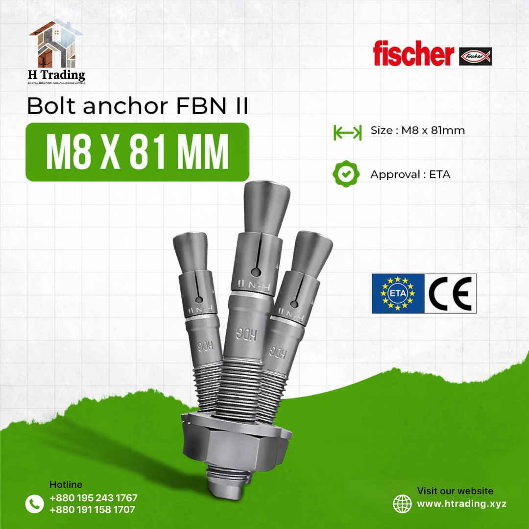 The fischer bolt anchor FBN II is a steel anchor for cost-effective fixations in non-cracked concrete. Thanks to its long thread and the two anchorage depths, the fischer bolt anchor FBN II is particularly flexible. In addition to pre-positioned and push-through installation, the bolt anchor is suitable for stand-off installation. In the stainless steel design, the bolt anchor is suitable for façade sub-structures, cantilevers and ladders outside.Advantages: