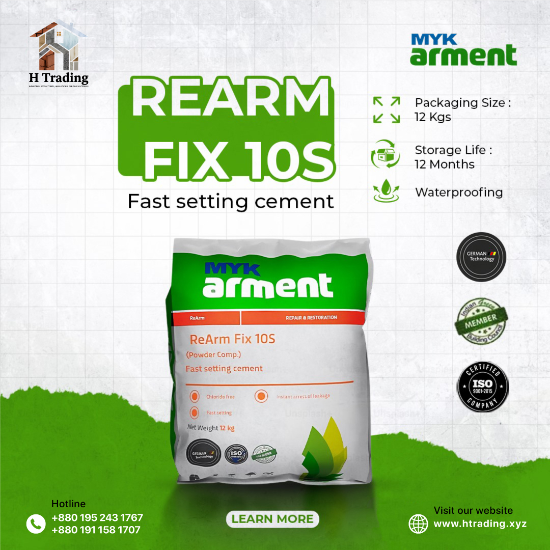 ReArm Fix 10S is chloride free quick setting cement after addition of water its sets instantly and useful for plugging purpose. Uses